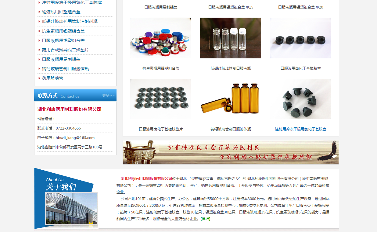 簡介:湖北利康醫(yī)用材料股份有限公司(原中南醫(yī)藥器械有限公司),是一家集科研、生產(chǎn)、銷售為一體,專業(yè)生產(chǎn)藥用鋁塑組合蓋、丁基膠塞與墊片、藥用玻璃瓶、藥用玻璃管等系列產(chǎn)品的科技型企業(yè)。公司地處炎帝神農(nóng)故里、中國編鐘之鄉(xiāng)——湖北隨州,成立于1992年,注冊資本3500萬元,占地400余畝。